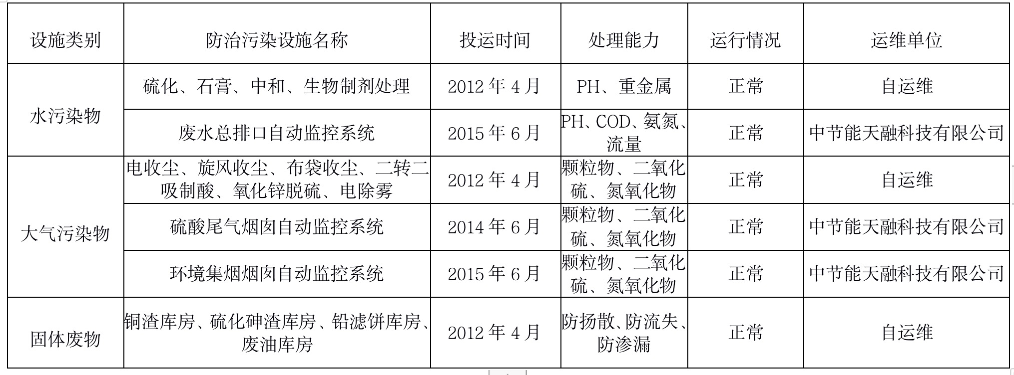防治污染设施的建设和运行情况